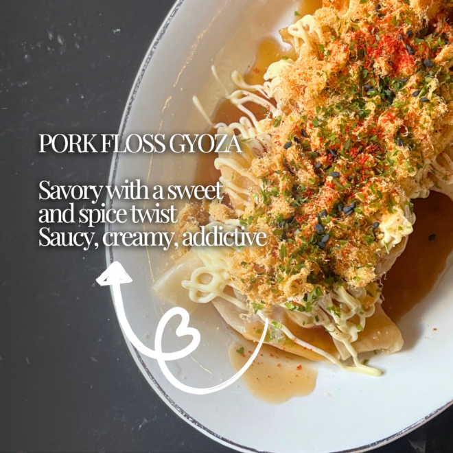 The Pork Floss Gyoza was saucy and slightly sweet, with shredded floss on top that adds texture and a different kind of flavor.
